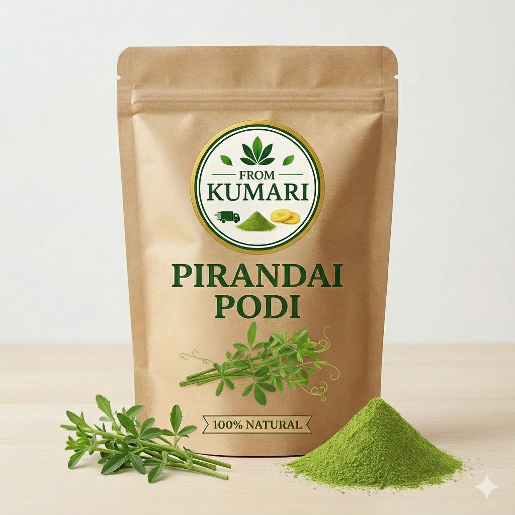 Pirandai Podi is a traditional South Indian health mix made from pure Pirandai (Cissus Quadrangularis) blended with premium spices to support bone strength, joint health, and digestive wellness. Prepared using a time-honored method to retain full nutrition and aroma, this podi makes staying healthy easy and delicious.